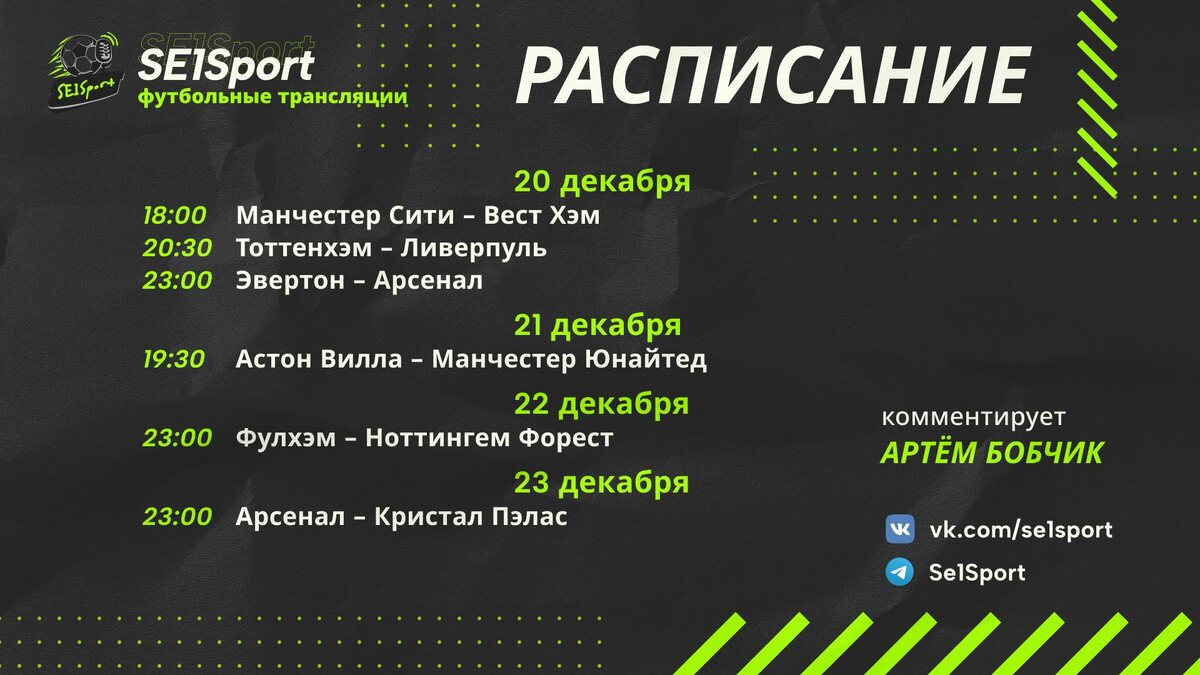 Расписание футбольных событи на ближайшие дни 20-23 декабря!