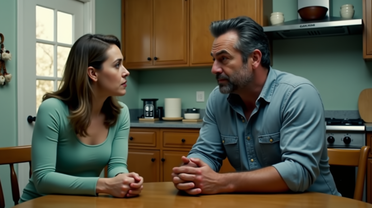 Сергей откинулся на спинку стула, скрестил руки на груди. В кухне, освещённой мягким светом лампы над столом, его лицо казалось усталым после рабочего дня, но в глазах стояла упрямая решимость.
