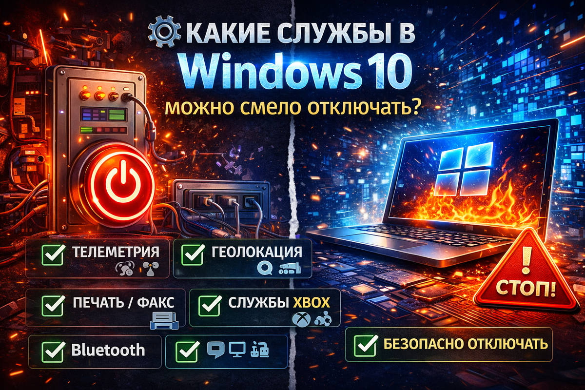 Windows 10 считается стабильной и проверенной системой 🧱. Но даже она из коробки запускает десятки служб, о которых большинство пользователей никогда не слышали. Часть из них полезна, а часть просто висит в фоне и ест ресурсы 🤨. Разбираемся, какие службы можно смело отключить, чтобы система стала быстрее и отзывчивее 👇 Windows 10 активно собирает информацию о работе системы. Для обычного пользователя пользы от этого почти никакой. Можно отключить: Результат - меньше фоновой активности и чуть больше приватности 🔐. Если у вас обычный ПК или ноутбук без сенсоров и GPS, эти службы просто не нужны. Отключаем: Минусов нет, а лишние процессы исчезают 👍. Одна из самых бесполезных групп служб для большинства пользователей 😄. Можно смело отключить: Windows продолжит работать стабильно, а ресурсов станет чуть больше 💪. Даже если вы никогда не запускали игры, Xbox-службы все равно работают в фоне. Можно отключить: Если вы не используете Game Pass - отключайте без сомнений 🎯. Если у вас нет