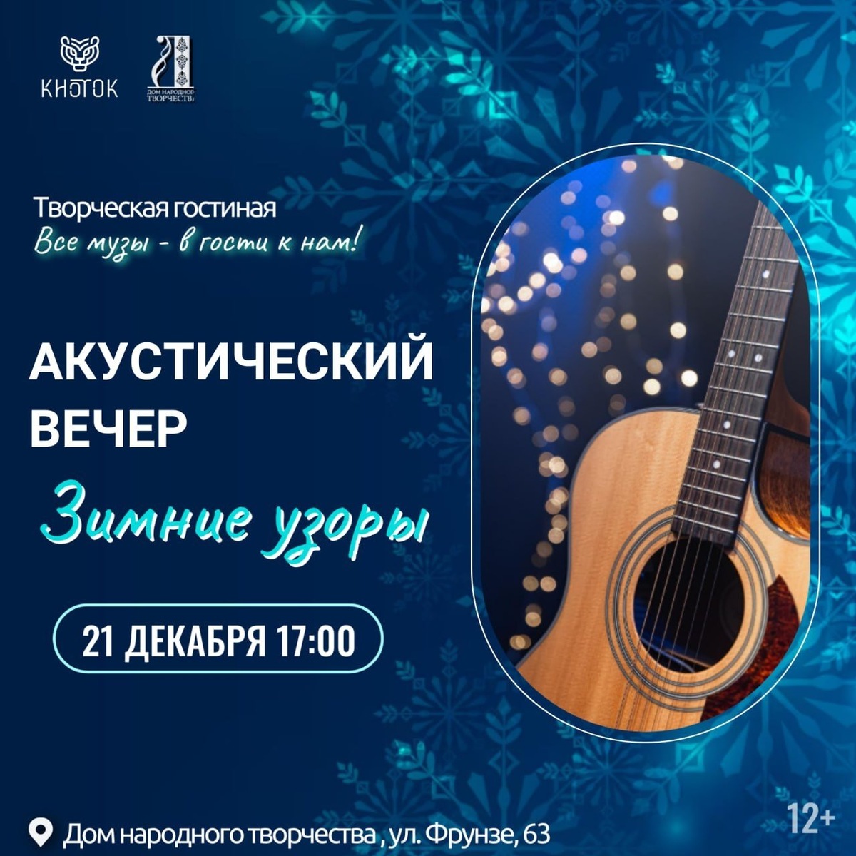 » ✔ Акустический вечер в уютной гостиной «Все музы — в гости к нам!» ✔ Новогодняя программа с душевными песнями и знакомыми мелодиями ✔ Выступление объединения академического вокала «Орфей» ✔ Участие творческого коллектива «Этюд» ✔ Тёплая атмосфера, живое общение и совместное пение 📅 Когда: #21_декабря — 17:00 ⛳ Где: Краевое научно-образовательное творческое объединение культуры, ул. Фрунзе, 63, Хабаровск 💳 Стоимость: бесплатно 👉 Афиша Хабаровска. Куда сходить, экскурсии