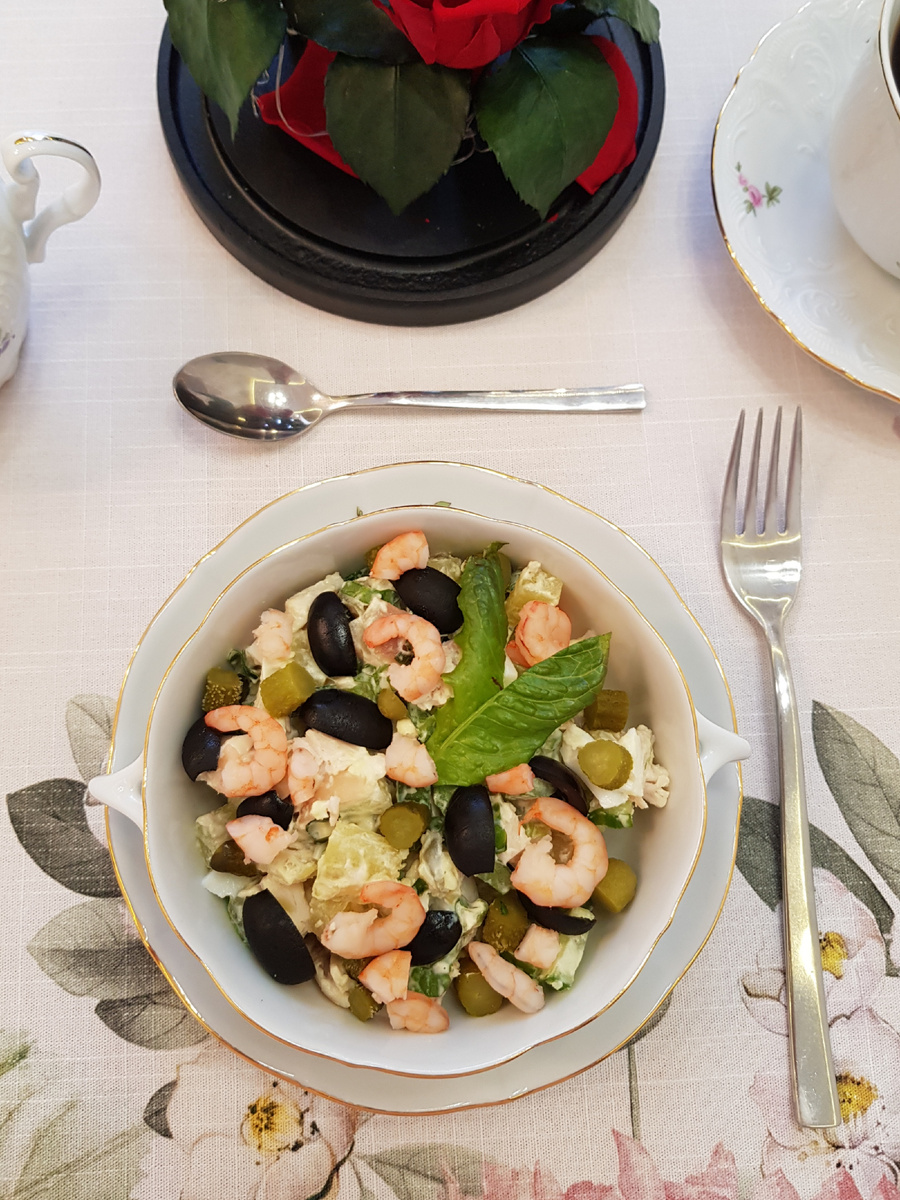 Добрый день, дорогие друзья! Уже совсем немного времени осталось до Нового года, и поэтому сегодня я представляю вашему вниманию вариант салата для праздничной ночи по рецепту № 182 из книги «Кулинария» 1955 года, первоначального полного издания, содержащего 960 страниц. Книга была выпущена Госторгиздатом в 1955 г. Она написана для поваров предприятий общественного питания, за короткое время весь тираж книги был реализован. В издательство поступило много писем с просьбой переиздать книгу. Объем книги «Кулинария» был очень большой. Идя навстречу пожеланиям читателей, Госторгиздат выпускает сокращенное издание, в котором 402 страницы. Этот салат в сокращенном издании находится под номером 40. Также похожий рецепт этого салата есть и в сборнике рецептур блюд и кулинарных изделий для предприятий общественного питания, выпускаемого с 1955 по 2025 года. Для приготовления 20 порций нам понадобятся: 900 грамм отварного куриного филе бедра, 900 грамм картофеля, 10 яиц, 600 грамм свежих огурцов,