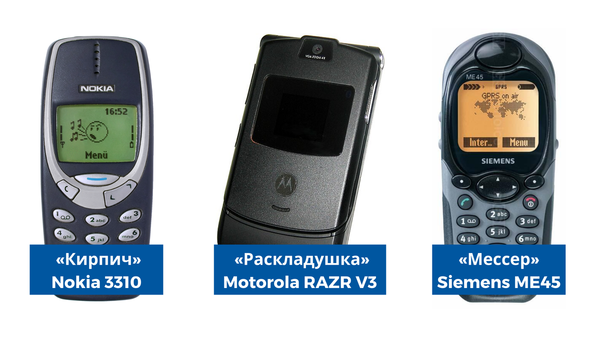 За десятилетие до того, как смартфоны поработили человечество, началась эпоха кнопочных мобильных телефонов, которая предопределила, как люди будут общаться и поддерживать связь в будущем. В России эта эпоха началась в 2000-х годах, когда рынок мобильных телефонов в России переживал бурный рост и трансформацию — от простых кнопочных аппаратов до первых смартфонов. В этой статье я хочу поностальгировать вместе с вами и вспомнить легендарные модели от почти забытых сегодня брендов «Nokia», «Siemens», «Motorola» и «Sony Ericsson». Легендарный «неубиваемый» телефон с монохромным экраном, «Змейкой» и длительной работой от аккумулятора. Был продан тиражом более 100 млн штук по всему миру. В 2000 году Nokia 3310 была лидером продаж в России. Шутки про стойкость этой модели ходят в интернете и сегодня. В 2001 обогнал по продажам Nokia 3310. Согласно данным на 2001 год, каждый тринадцатый абонент в России пользовался Siemens C35. Телефон был удобен: округлый корпус идеально лежал в руке. Многие
