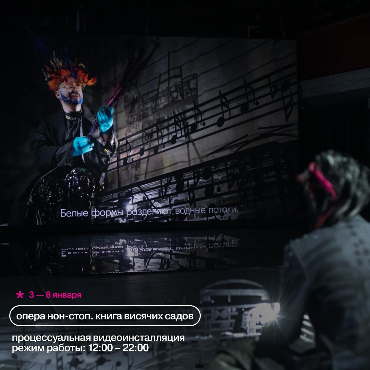 В январе приглашаем вас на Основную сцену Электротеатра — вживую увидеть костюмы художницы Анастасии Нефёдовой и насладиться спектаклем. Видеоинсталляция, закольцованная и безостановочно длящаяся с 12.00 до 22.00 на протяжении пяти дней, устроена как непрерывная трансляция в «трехмерном» пространстве, что дает возможность полностью погрузиться в мир реальной оперы Перед просмотром предлагаем прочитать текст Бориса Юхананова про то, как в проекте удалось воплотить капсульное время: 💬 Читать статью «Книга Висячих садов» — спектакль Бориса Юрьевича, вышедший в 2023 году в рамках совместного проекта Фестиваля «Золотая Маска» и Благотворительного фонда Владимира Потанина THEATRUM С 3 по 8 января 2026 года ⭐️Билеты и подробности