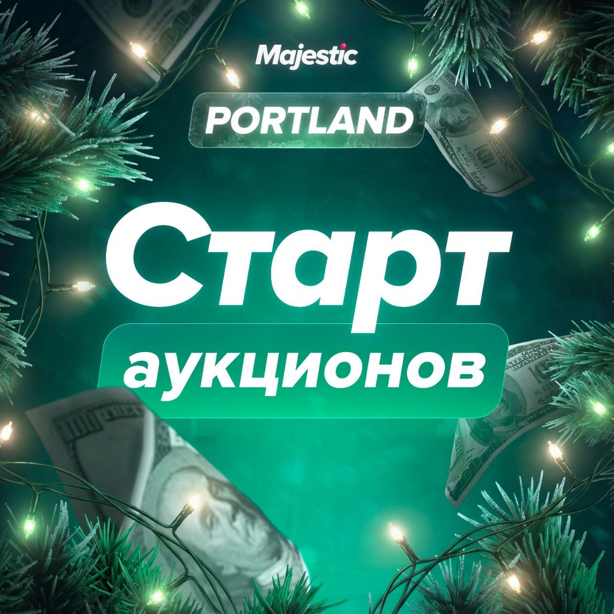 Аукционы на сервере PORTLAND — ваш шанс уже в первые дни стать владельцем самых востребованных объектов: домов, бизнесов и банкоматов. 🗓 Расписание торгов: 😀20 декабря (суббота): 16:15 — Квартиры (10 гаражных мест) 18:00 — Первые 132 дома 19:00 — Вторые 132 дома 20:00 — Банкоматы 😀21 декабря (воскресенье): 18:00 — АЗС 19:00 — Автомойки 20:00 — Магазины 24/7 😀22 декабря (понедельник): 18:00 — Барбершопы 19:00 — Оружейные магазины 20:00 — Магазины одежды 😀23 декабря (вторник): 18:00 — Автосалоны 19:00 — Los Santos Customs 20:00 — Тату-салоны 😏 Следите за ежедневными итогами аукционов, а также самой интересной статистикой в канале Majestic Live. ❤️ Majestic Role Play