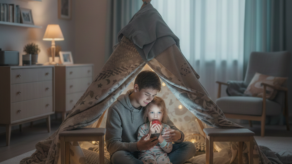 Максим в такие моменты хватал Лизу, затаскивал её в их общую маленькую комнату, включал старый магнитофон погромче и строил «крепость» из одеял и подушек.