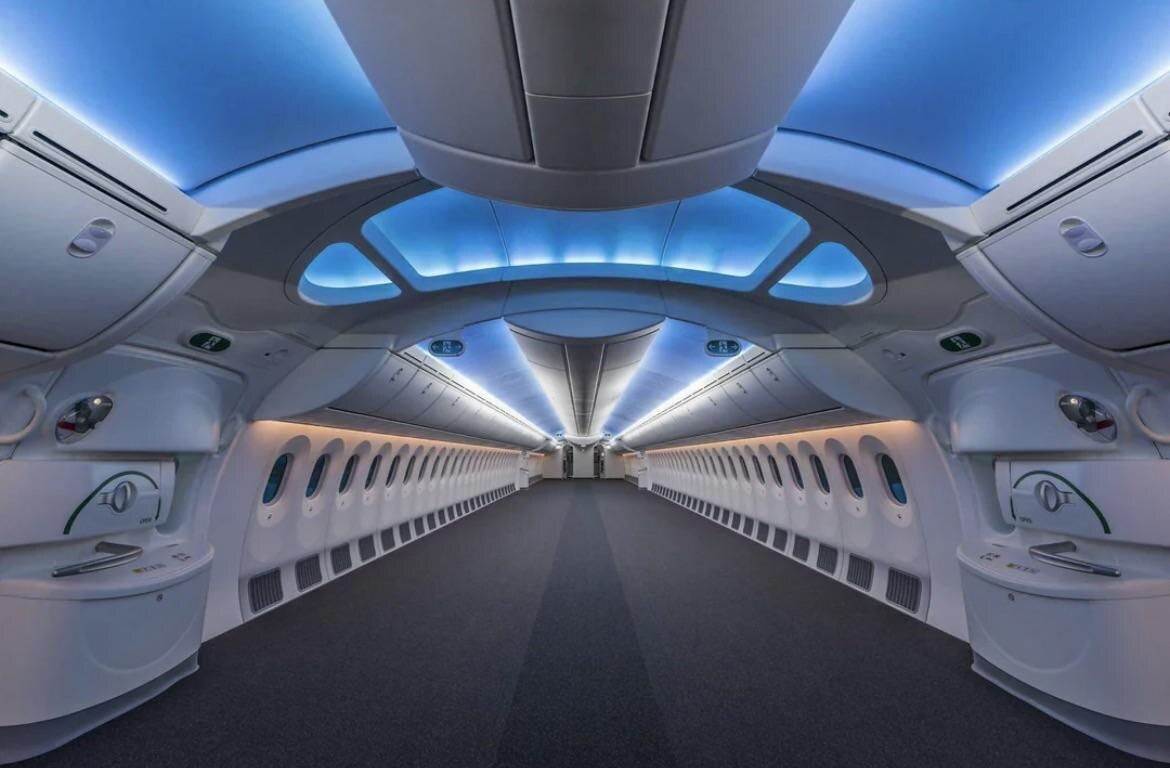 Так выглядит новенький самолёт без установленных в нём кресел. Если что, на фото Боинг 787.