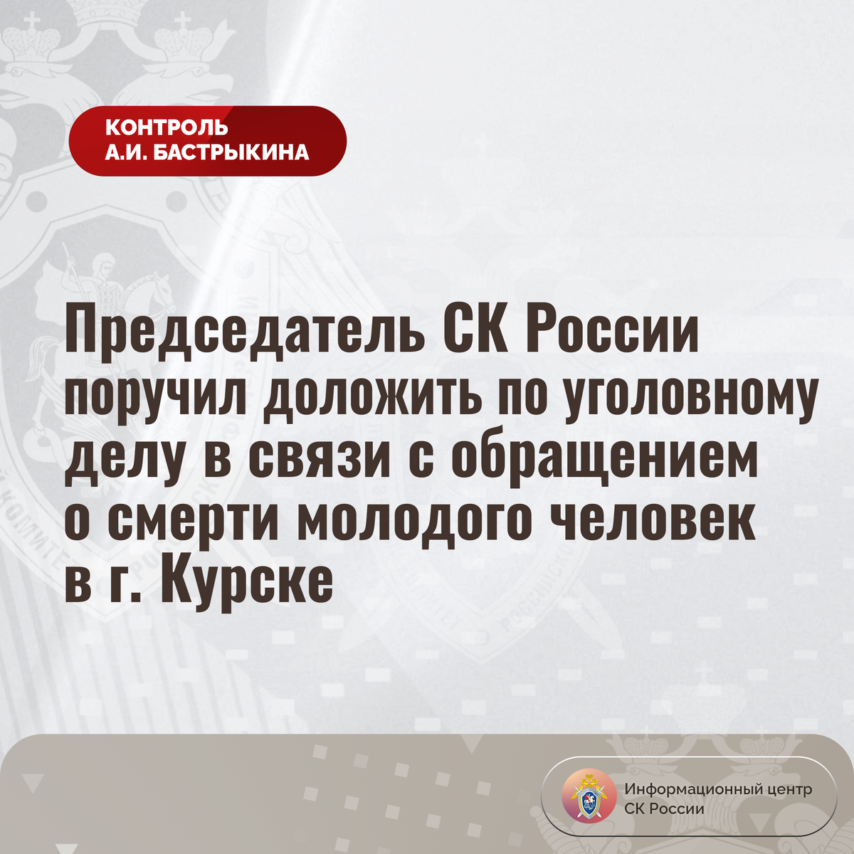 Председатель СК России поручил доложить по уголовному делу в связи с обращением о смерти молодого человек в г. Курске