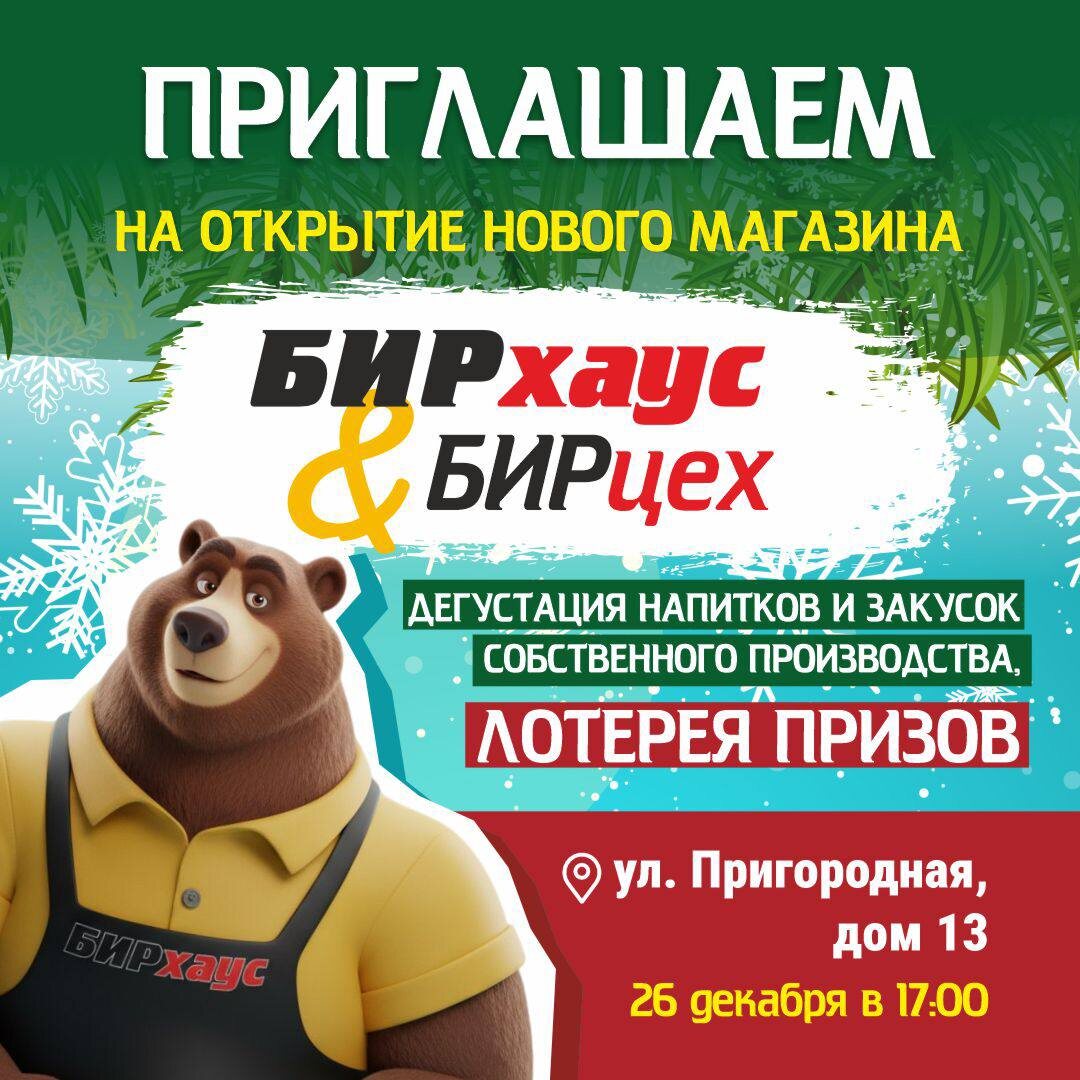 Открытие нового БИРхаус! 26 декабря в 17:00 приглашаем вас на грандиозное открытие магазина БИРхаус по адресу: ул. Пригородная,13