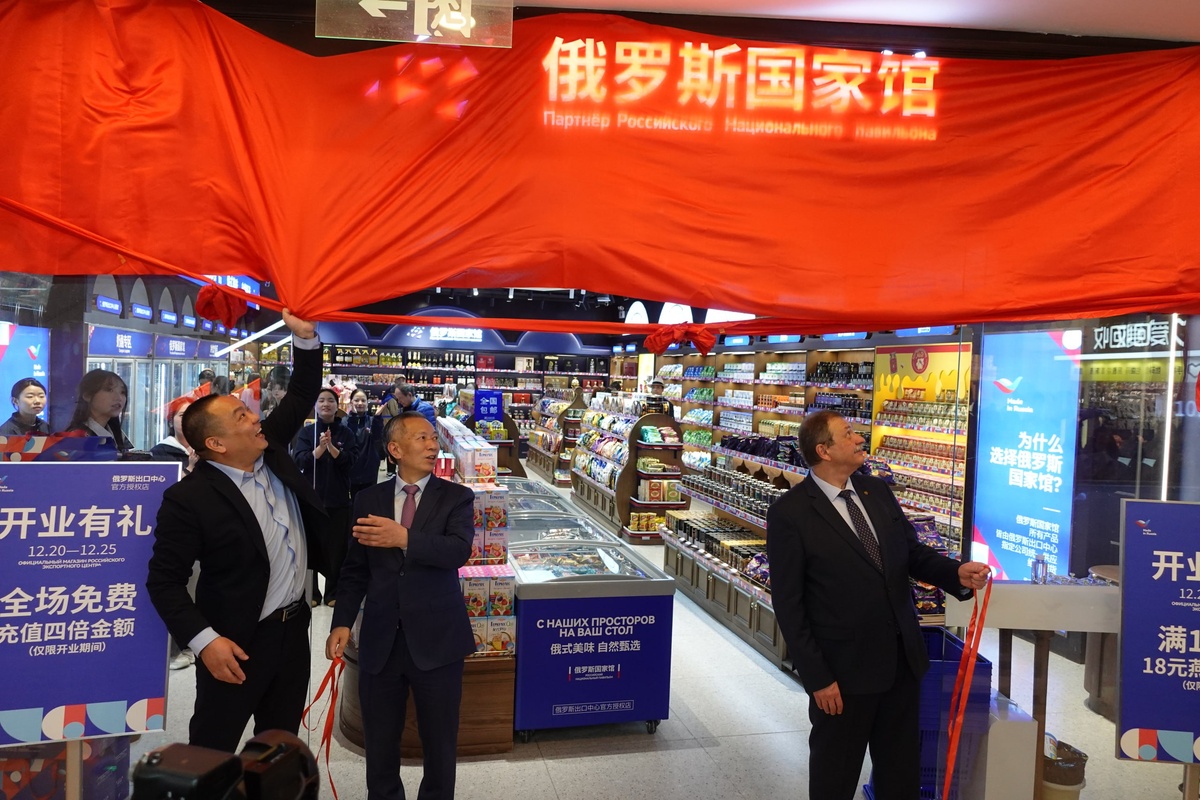». Торговая точка заработала в одном из крупнейших торговых центров мегаполиса — Global Harbor — и стала уже третьей в этом городе. Магазин открыт региональным партнёром Российского павильона — компанией Shanghai Pinyinong Electronic Commerce — при поддержке Российского экспортного центра. Проект реализуется в рамках продвижения российских товаров на зарубежные рынки и стал очередным шагом в расширении присутствия России в Китае. На церемонии открытия вице-президент РЭЦ Алексей Солодов отметил, что программа российских национальных павильонов уверенно развивается. Если на начальном этапе акцент делался в основном на продовольственные товары, то с этого года в экспозиции всё активнее представлена и промышленная продукция, а также услуги российских компаний. По его словам, это формирует более современный и комплексный образ России на международном рынке. Гости мероприятия смогли посетить дегустационную зону и познакомиться с широким ассортиментом российской продукции. Были представлен