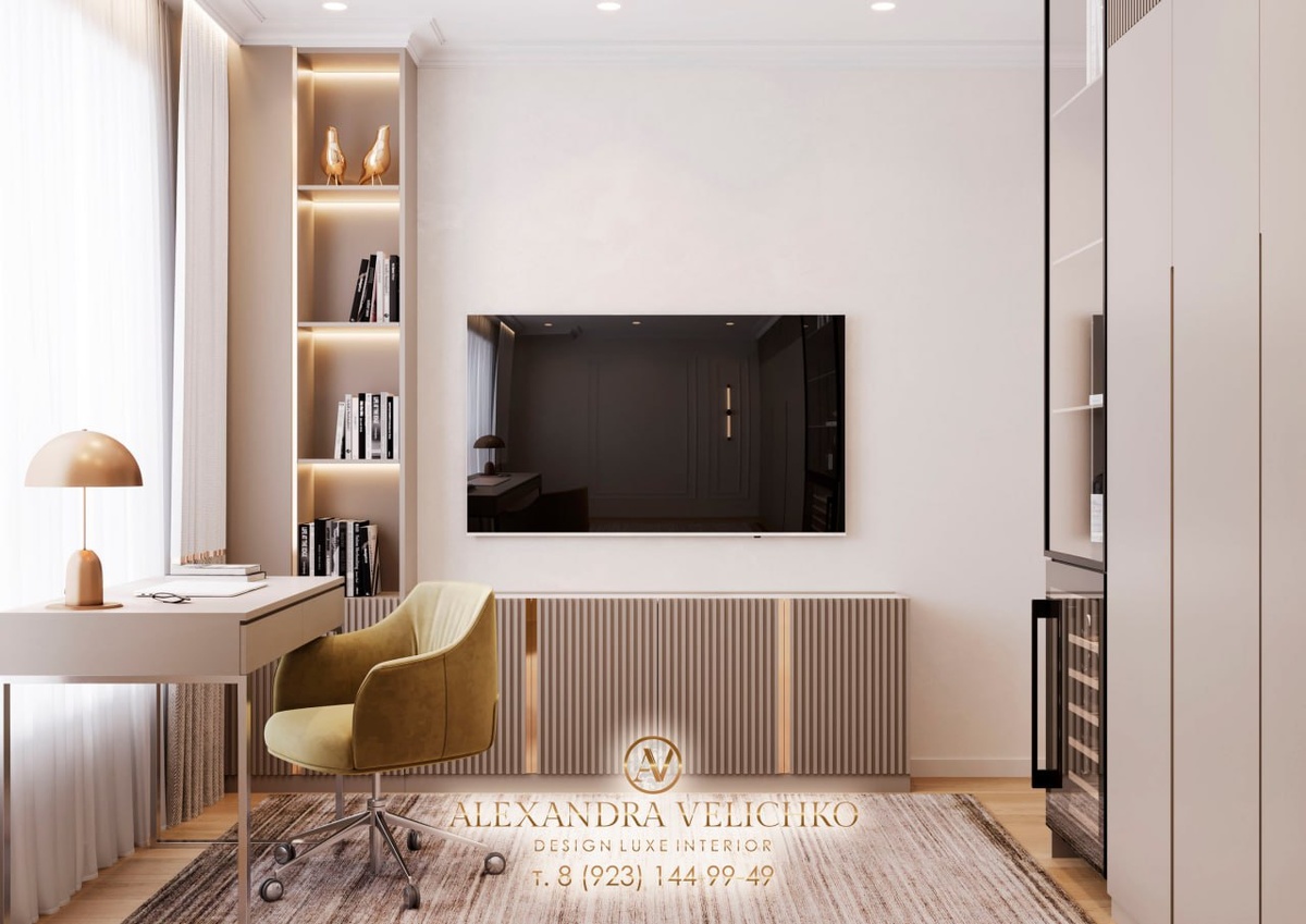 Кабинет с удобными и вместительным шкафом со встроенным винным шкафом