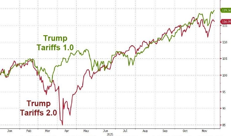динамика акций США на первом сроке Трампа и сейчас Как и на первом сроке, сейчас после турбулентных периодов анонсов пошлин, все пришло обратно к "Трампо-равновесию". Трамп на своих выступлениях часто хвастается новыми рекордами в акциях, что указывает на то, что динамика SP500 ему далеко не безразлична. Трамп уже несколько раз заявлял, что собирается поддерживать акции на рекордных уровнях.. и что акции должны продолжать расти. В акциях США рекордно заинвестированы домохозяйства США, а это - избиратели (их нельзя сильно разочаровывать) - скоро промежуточные выборы. MT в MAX
