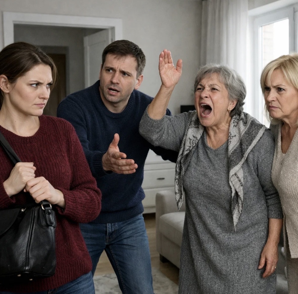 Людмила ворвалась в квартиру как ураган — в дубленке нараспашку, с огромной сумкой, от нее пахло резкими духами и холодом. Пятьдесят восемь лет, крашеная блондинка с начесом, накрашена так, будто на свидание собралась.