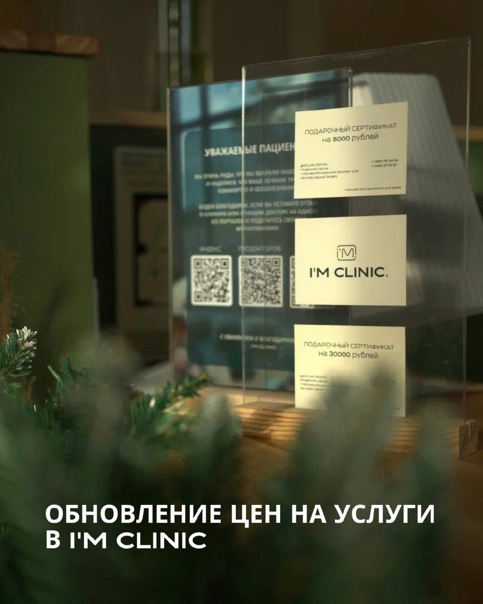 ! В I’M CLINIC мы создаем улыбки вашей мечты, используя самые современные технологии и материалы премиум-класса. Сегодня хотим поделиться с вами важной информацией. Мы живём в постоянно меняющихся экономических условиях, и, чтобы и дальше обеспечивать высокий уровень сервиса и безупречное качество лечения, с 12 января 2026 года в I’M CLINIC будет произведена корректировка цен на услуги. Сейчас самое удачное время, чтобы завершить или начать запланированное лечение по текущим ценам с выгодными условиями. Благодарим вас за доверие и понимание. Команда I’M CLINIC всегда рада видеть вас. 📍Мичуринский проспект, д.56 📞 +7 (495) 271 92 62 📞 +7 (995) 797 94 94 #стоматологиямосква #стоматологиявМоскве #стоматология #эстетическаястоматология #стоматологияраменки #винирымосква #имплантациямосква #элайнерымосква Имеются противопоказания. Необходима консультация специалиста.