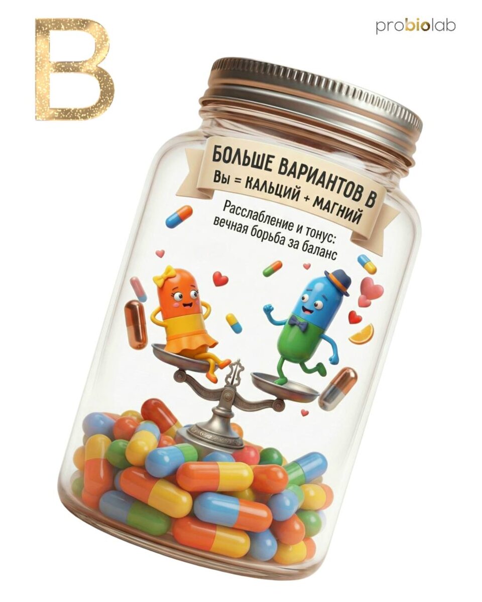 Вы = КАЛЬЦИЙ + МАГНИЙ «Расслабление и тонус: вечная борьба за баланс» Ваша динамика: Вы — дилемма «расслабиться или поднапрячься». Кальций (нужен для тонуса) и магний (нужен для расслабления) конкурируют за усвоение. Но организму нужны оба. Как вы ссоритесь: Один хочет активностей, второй — релакса. Конфликт интересов — ваша точка роста. Совместимость: Балансирующая. Ваша задача — не победить, а найти ритм. Вы — живое воплощение баланса.