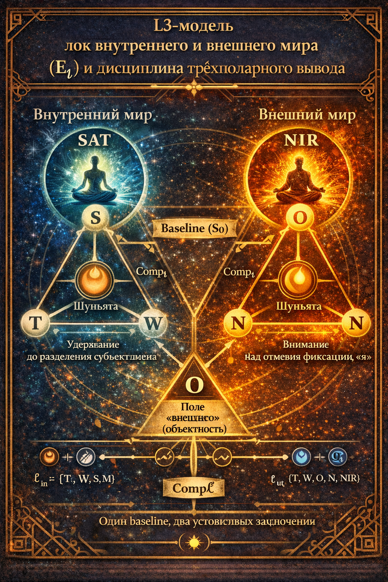 сатори и нирвана в моей L3-модели выступают как два устойчивых замыкания одного baseline, возникающие из-за различия лок E_ℓ.