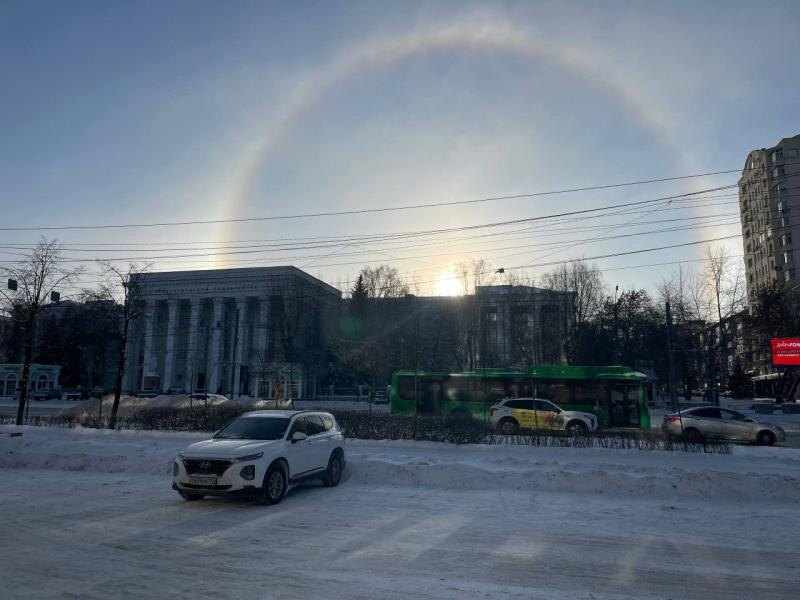 Эффектное зрелище наблюдали жители Челябинска 20 декабря. Город озарило солнечное гало. Зимой это световое кольцо появляется, когда на улице морозно и безоблачно, передает корреспондент «Вечерки».