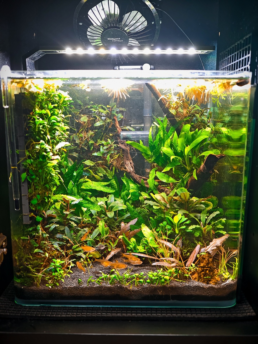 Моя ферма-свалка стабилизировалась. Листья больше не падают, пошли новые побеги. Ксен отступает 👍 За последний месяц в аквариуме произошло несколько изменений: - Органическая вспышка длилась долго, что привело к гибели 90% отобранного криля кровавой мери. - Была проведена глобальная прополка. - В аквариум добавил корягу, которая раньше лежала без дела в тумбе. - Перенес много буцефаландр и папоротника спун из другого аквариума. - Переселил рыбок. - Замена фильтра. - На пробу внёс большую дозу грунтовых бактерий от PRESTIGE AQUA. — — — 🏘 AquaInspiration - Ваш гид в мире аквариумистики! 😘