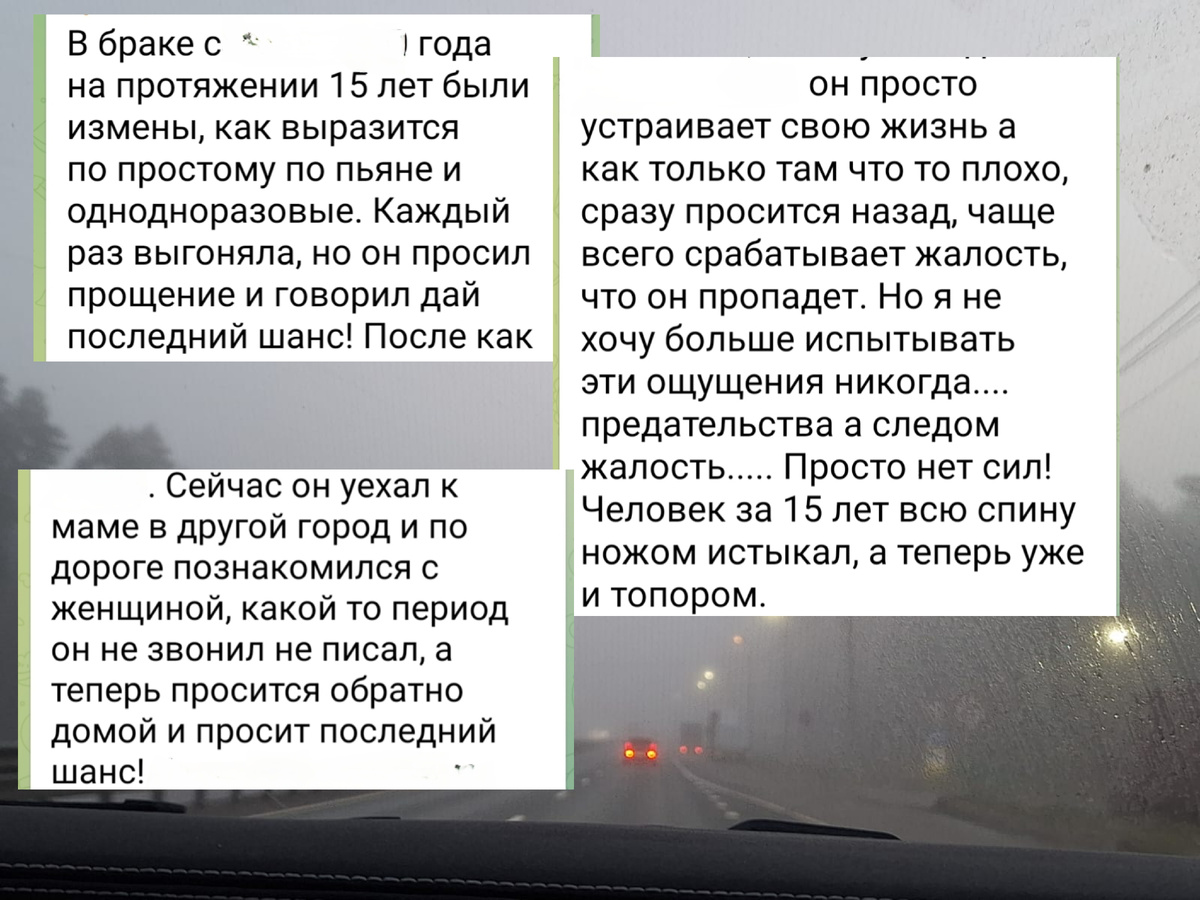 1. Цикличность. За 15 лет сформировался четкий паттерн: проступок (измена) → ваша реакция (выгоняете) → его манипуляция («последний шанс», игра на жалости) → ваше возвращение → период затишья → повтор. Это не отношения, это система, где вы выполняете функцию «эмоционального спасательного круга».