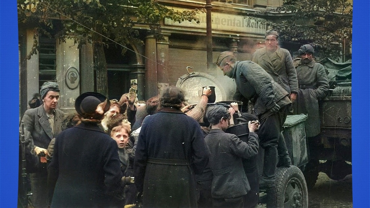 Пока военные очищали город от скрытой угрозы, на поверхность вышла другая, не менее страшная опасность — голод и эпидемии. Система снабжения Берлина рухнула. Не работали водопровод, канализация, электричество. На миллионное население, в основном состоявшее из женщин, стариков и детей, приходились лишь жалкие запасы. Угроза голодной смерти и тифа была абсолютно реальной.