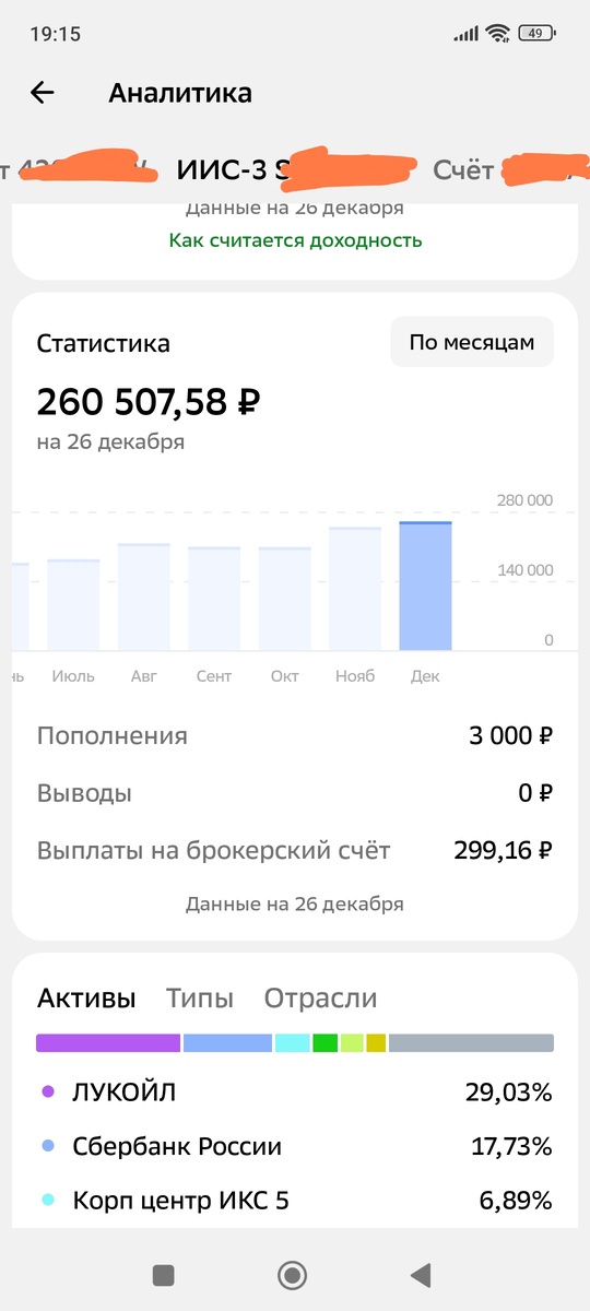 Скудные финансовые возможности отразились и на моем пополнении ИИС, оно было самым минимальным за весь год.