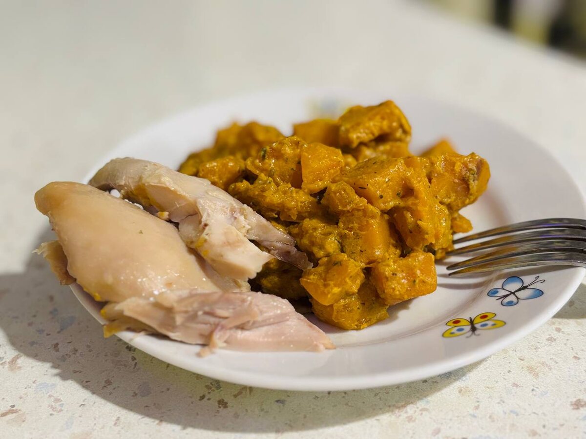 Тыква тушеная в смешанном соусе.