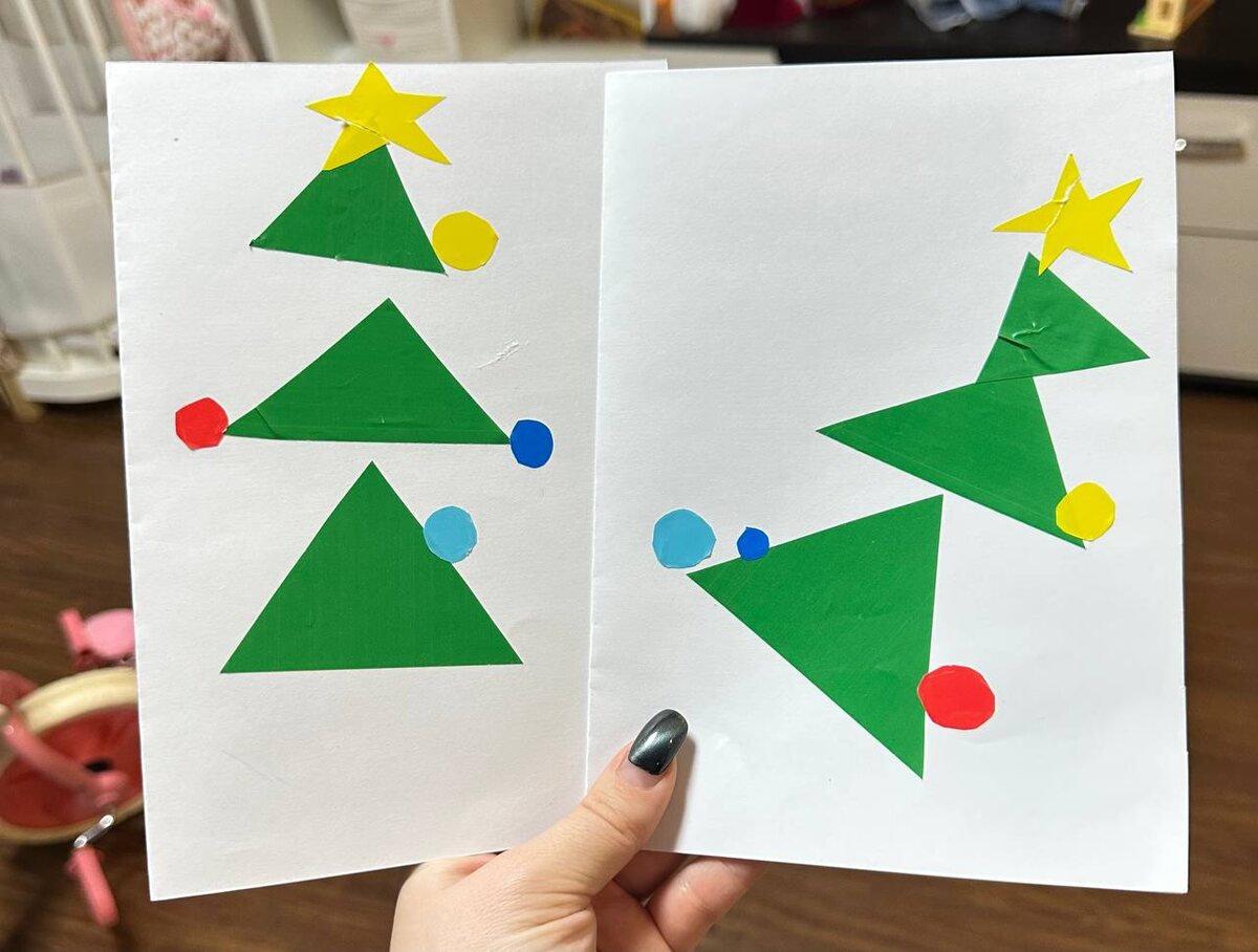 Мы тут поделки лепим 🎄 оба варианта клеила Дана, но на второй что-то пошло не так 😂