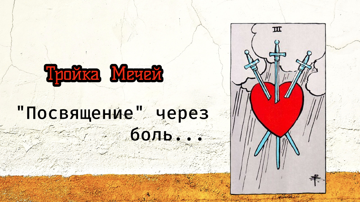 Тройка мечей показывает «посвящение» через боль и страдания. Пройдя этот урок, человек приобретает опыт и стойкость, таким образом происходит «закалка характера». "Самая темная ночь - перед рассветом" – это фраза очень четко подмечает глубокий смысл карты.