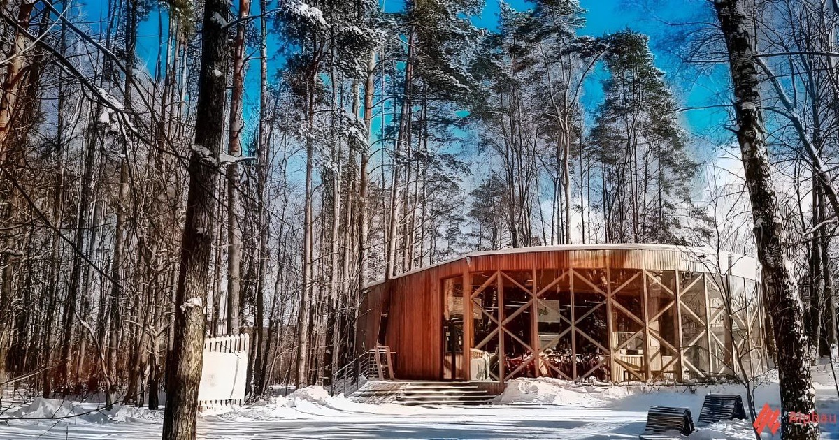 Конструкция возведенами нами в 2014 году на территории парка Мещерский в Москве и успешно используется уже 11 лет. Перед нами стояла задача создать павильон с панорамным видом, который будет соответствовать современному облику столицы. Для этого мы использовали сочетание дерева и светопрозрачных материалов, что позволило визуально облегчить конструктив и создать внутри открытое и уютное пространство. Благодаря полукруглой форме, прокатное оборудование наглядно представлено и на витрине, и снаружи, что привлекает внимание потенциальных посетителей. Особенности проекта: • Площадь - 220 м2 • Материалы каркаса и перекрытий - клееный брус. Утепление стен и перекрытий - 250 мм • Внешняя и внутренняя отделка - планкен из лиственницы • Покрытие планкена - бесцветная лазурь OSMO • Здание полностью автономное, к нему подключено всего 15 кВт электроэнергии. Оно соответсвует требованиям европейского стандарта энергоэффективности EnEV 2009. Хотя конструкции уже больше 10 лет, и сейчас она