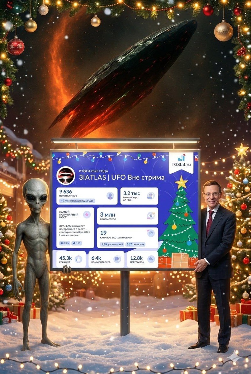 Все подводят какие-то итоги года, пожалуй напишу и я пару строк. В общем то этот год принес нам 3Iatlas, несомненно это главное событие этого года 🏆. Мы все узнали кто такой Ави Луеб, что он такой же мечтатель как и многие из нас, хотя и выдающийся учёный 👨🔬. Наверное многим жаль, что Атлас пролетел как то мимо нас, жаль, что в этом году нам официально не сказали одни ли мы во вселенной 🌌 или нет, а так хотелось. Благодаря Атласу (и моим ии роликам которые разлетелись по всему миру 🌏, каналам и даже тв ) канал значительно подрос , в названии появилась приписка Атласа, а так же появился бот Ави , но это временно. В ближайшее время, сделаю розыгрыш 🌟 премиум подписки телеграм. В общем, Всех с наступающим 🎄 новым годом 🎄, пусть Ваши желания исполняются и всем нам мира 🕊️ , добра, здоровья. Спасибо всем кто ставит лайки, пишет комментарии 👇, делает звёздные реакции, отдает голоса за канал и просто смотрит посты ! Ещё раз всем огромное спасибо 🙏.