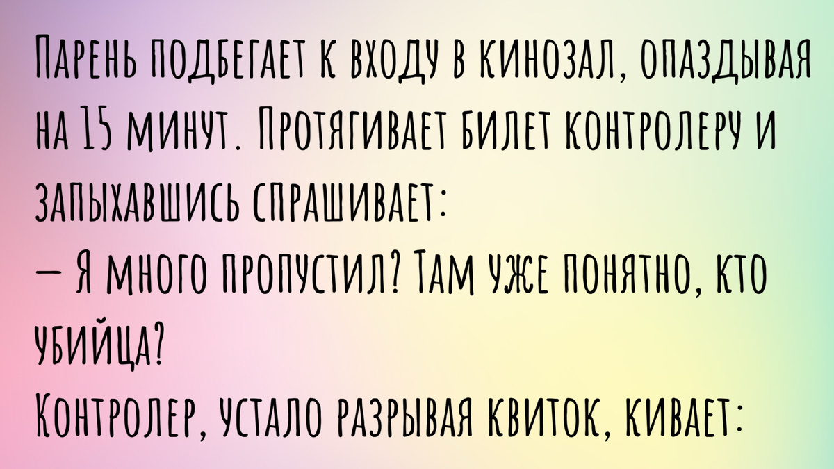 Напишите в комментариях, какой из этих анекдотов вам понравился больше всего? Или, может быть, у вас есть своя смешная история из кинотеатра? Делитесь, посмеемся вместе!