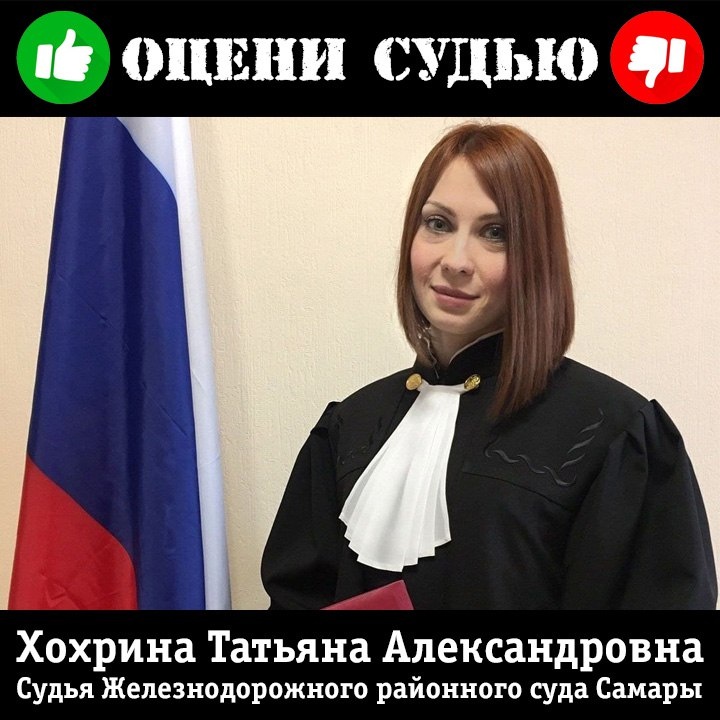 Хохрина Татьяна Александровна Судья Железнодорожного районного суда Самары Известна тем, что приговорила четверых невиновных людей к срокам от 8,5 до 9,5 лет колонии за преступления, которых они не совершали. В прямом смысле слова. Айдара Камалетдинова, Андрея Воронцова, Александра Кузнецова и Геннадия Казанцева она признала виновными в вымогательстве у Екатерины Мосейчук квартиры, которая ей не принадлежала, она была лишь номинальным собственником. Да и самого события вымогательства не было — никто из этих людей с Екатериной не связывался и никаких требований ей не выдвигал. Более того невинно осужденные предоставили в суд неопровержимые доказательства того, что они были в эти дни в совершено других местах, это подтверждено показаниями прямых свидетелей и кипой документов. Вина Айдара по версии следствия в том, что он якобы провел воспитательную беседу с любовником Екатерины о том, что присваивать чужое имущество нехорошо. За это он получил 9 лет «строгача». Кузнецову 9 лет дали