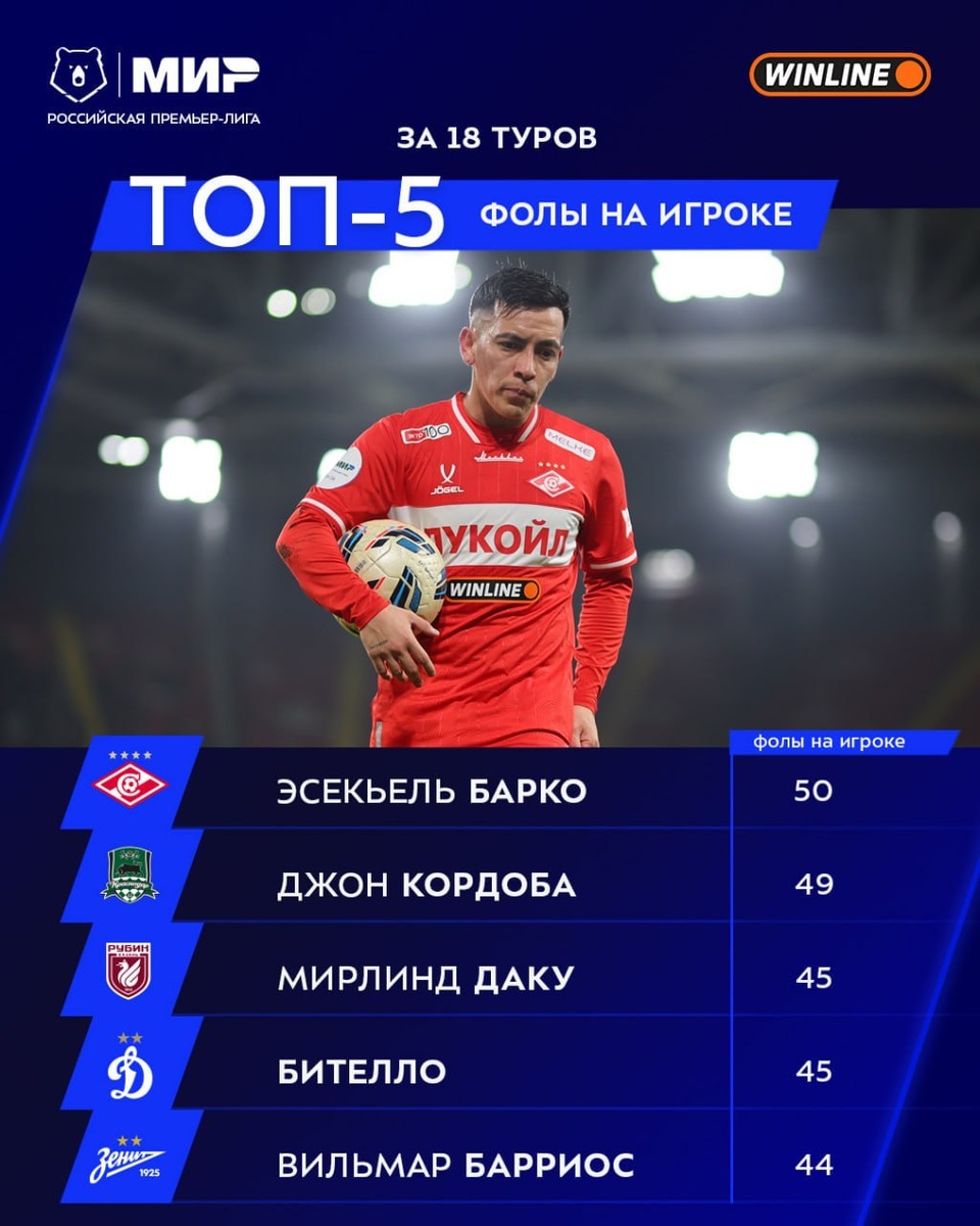 ⚽️ Даку собрал на себе 45 фолов в РПЛ