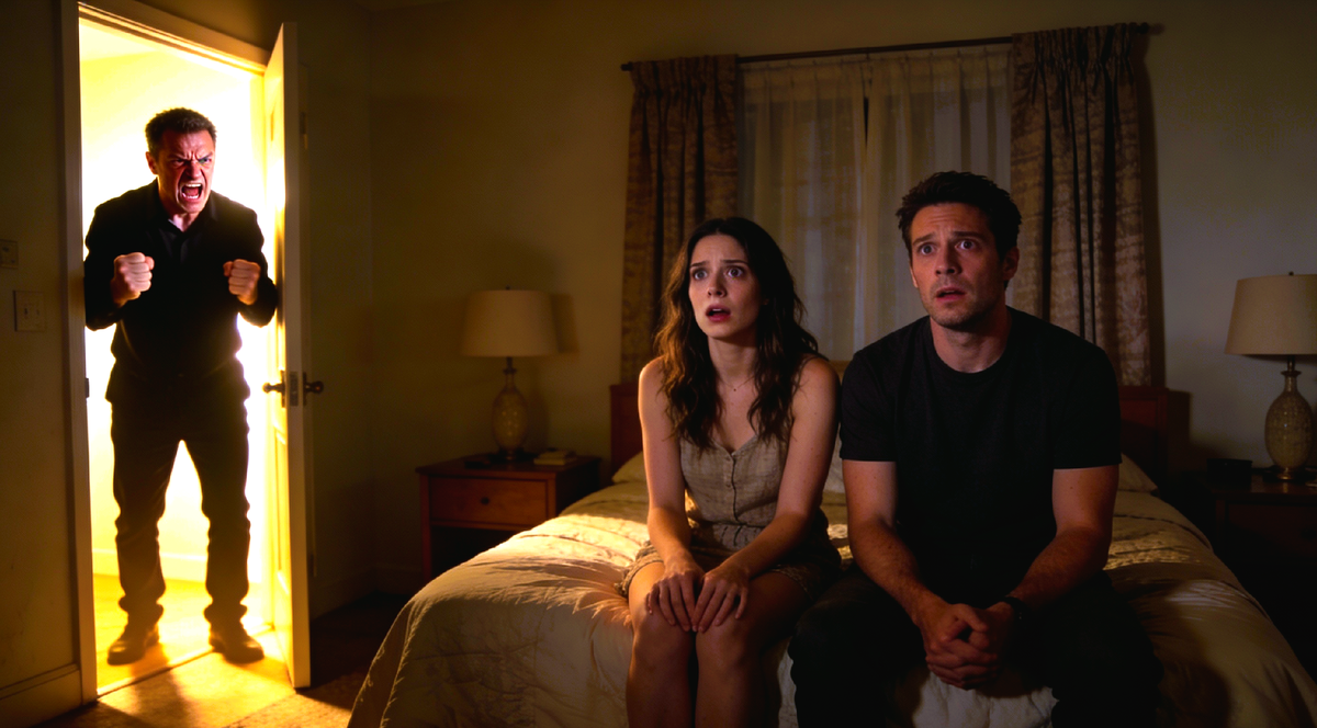 Светлана сидела на кровати в его любимой розовой пижаме, волосы растрёпаны, глаза широко распахнуты. Рядом с ней, откинувшись на подушки, полуодетый лежал незнакомый мужчина лет тридцати пяти - спортивный, с аккуратной бородкой и дорогими часами на запястье.
