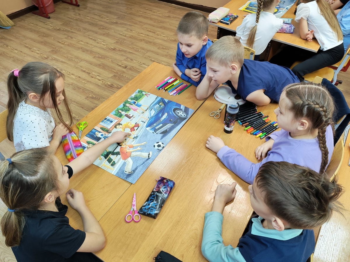 командной игры. На первом этапе инспекторы предложили детям проанализировать изображения с различными дорожными ситуациями. Школьники вместе разбирали, какие действия участников движения были правильными, а где были допущены ошибки, формируя тем самым навык оценки обстановки на дороге. Вторым заданием стал творческий конкурс. Каждая команда создавала тематический плакат-призыв: одна команда агитировала пассажиров всегда пристегиваться, другая — напоминала пешеходам о важности перехода дороги строго по «зебре», а третья — призывала водителей не пользоваться телефоном за рулем. Завершающим и самым практичным этапом урока стал мастер-класс по изготовлению световозвращателей. Инспекторы рассказали о том, как эти элементы спасают жизни в темноте, после чего каждый ребенок своими руками сделал себе яркую световозвращающую наклейку из специальной бумаги.