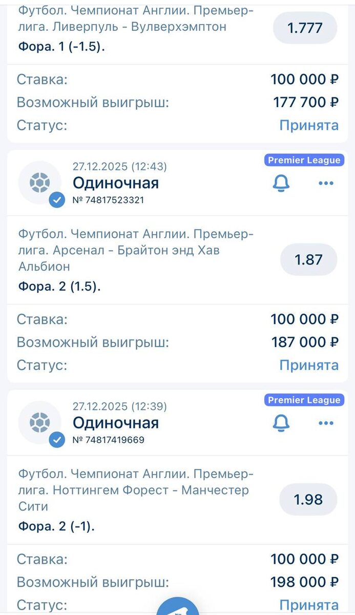 18 +. Не является ИИР. Рубрика #ЛудкасБородой АПЛ. Ноттингем - Ман. Сити. Ноттингем дома бывает наказывает всякий Ливерпуль и Тоттенхем за дырявую оборону, но тут праймовый Манчестер будет. Надежней их в обороне лишь Арсенал. Да и уровень объективно разный. Фора Ман. Сити -1 за 1,98 кф. Арсенал - Брайтон. Арсенал что-то кое как побеждает в последних играх. Еле ходят по полю, все вымучивают. В финале кубка против Кристалла вообще тяжело и долго играли. А тут активно прессингующий Брайтон, выглядит свежее. Да и в прошлом сезоне два раза отжимали у Арсенала очки. Возьму Фору Брайтона +1,5 за 1,87 кф. Ливерпуль - Вулверхэмптон. У Вульвов тут только один шанс - если Ливер выйдет на расслабоне в хуй не ставя оппонента. Но учитывая ситуацию Ливера в таблице такого быть не должно. Фора Ливера -1,5 за 1,77 кф. Челси - Астон Вилла. С хуя ли тут Челси фаворит по кф? в 4 из 5 последних личех Вилла проебала лишь раз в основное время. Всегда плотная борьба. К тому же петушары из Челси сливают