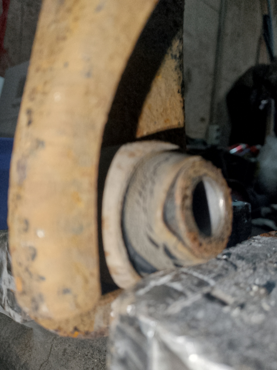 Под фронтальным сжатием в тисках задний продавливался с трудом , а передний слекостью давился вглубь с прикосновением до наружней обоймы сайлентблока из зачего и происходил удар. Также свидетельствует и большее количество трещин на резине сайлентблока.