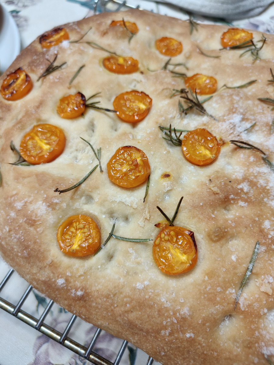 Сегодня у меня два завтрака. И фокачча. Вчера я была расстроена. Вроде ничего такого не случилось, все ожидаемо, но все равно расстроилась. Горячая ванна не помогла. Но, на такой случай у меня есть средство, которое меня никогда не подводит. И это средство - выпечка. Из простых продуктов - муки, воды и дрожжей получатся волшебные вещи. Ты практически сразу видишь результат своей работы, по дому плывет восхитительный аромат, и, когда ты достаешь выпечку из духовки, т уже не можешь не улыбаться. Все проблемы растворились, всё прошло, всё наладилось. Встала я сегодня раньше своих. И завтракала кофе с курабье. Потом занималась уборкой и пекла фокаччу. А потом проснулись мои мальчики и мы позавтракали второй раз. Ну, собственно, рецепт фокаччи. Единственная сложность во всем этом - будет нужен миксер с насадкой для теста. Будет нужно: 500 мл теплой воды 15 гр сахара 2 ч.л. соли + соль для посыпки 1 пакетик сухих дрожжей, 11 гр 2,5 ст.л. оливкового масла 800 гр пшеничной муки немного поми