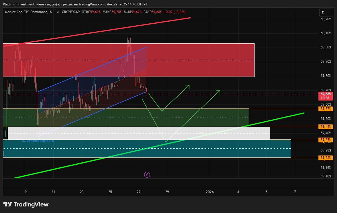 Потому, что #BTC.D пока проваливается, уровни отскока я по ней указал