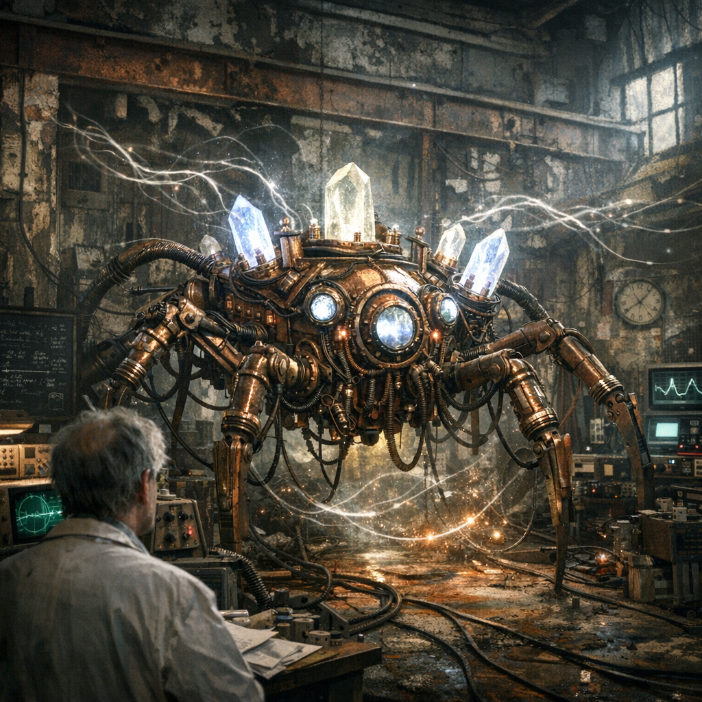 «Хроноскоп-Х» был не красивым фантастическим аппаратом, а жутковатым пауком из меди, свитых проводов и мерцающих кварцевых «глаз». Он не перемещал в прошлое — он гнул саму ткань реальности, создавая микроскопические завихрения в её течении. На доли секунды капля дождя замирала, часы на стене начинали спешить или отставать, а тень от лампы двигалась чуть не в такт. Для Александра это была музыка, партитура законов мироздания, которую он почти расшифровал.