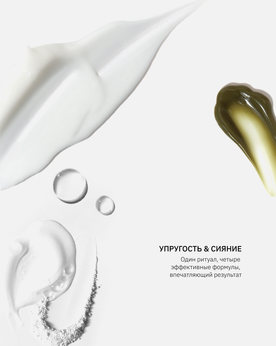 Четырёхшаговый ритуал ухода основан на клинически подтверждённых активах и продуманных текстурах. Натуральные формулы работают мягко и точно, разглаживают кожу, делают её более упругой, свежей и сияющей.