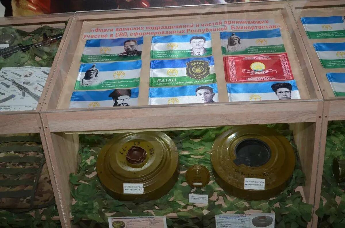 Телеграм-канал Ассоциации ветеранов СВО Башкирии сообщает, что музей открыли в Благоварском районе, в селе Языково. Он разместился на базе местной общеобразовательной школы. В музее представлены флаги именных батальонов, трофейные предметы, фотографии, а также интерактивная часть с мультимедийными материалами об СВО. Ассоциация ветеранов СВО передала музею трофейные монеты, шевроны, флаги и газеты, полученные от бойцов спецоперации. Советник главы республики Алик Камалетдинов также передал для музея шевроны, подаренные ему бойцами. Сама школа ведет работу по патриотическому воспитанию детей. Здесь есть шаймуратовский класс, активно работают юнармейцы. Фото: телеграм-канал Ассоциации ветеранов СВО.
