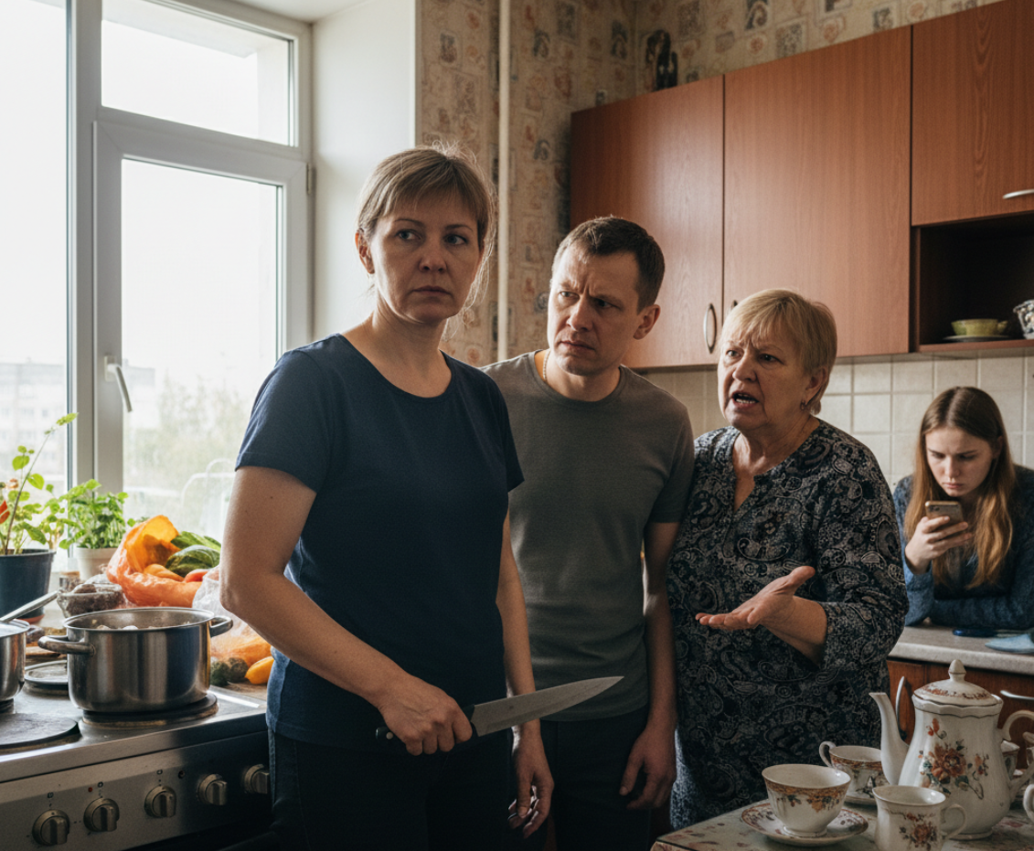— Да как у тебя язык поворачивается! — взвизгнула свекровь. — Мы к сыну едем! Я в твои годы на двадцать человек столы накрывала и не ныла! А ты... Лентяйка! Эгоистка! Нормальные жёны не устают готовить для семьи! Миша! Миша, ты слышишь это? Приструни свою жену!