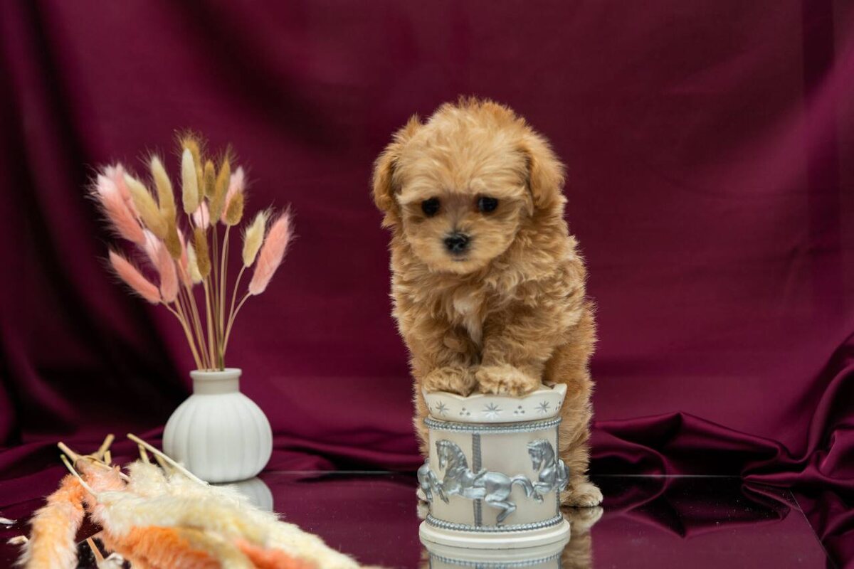 Самая маленькая, самая кукольная и самая трогательная девочка из всех щенков, которые у вас когда-либо были. У неё очень короткая, аккуратная мордочка, выразительные большие глазки и мягкая, плюшевая шерсть тёплого абрикосового оттенка. По типу — ярко выраженный baby face, тот самый «вау-эффект» с первого взгляда. Лили выглядит как живая игрушка, но при этом она гармоничная и пропорциональная, с нежным и утончённым обликом. В её выражении — спокойствие, мягкость и особая трогательная застенчивость, которая мгновенно вызывает желание взять её на руки и не отпускать. Это та самая девочка, которая создана для любви, восхищённых взглядов и особого места в сердце. Лили — редкий, щенок-мечта, который встречается нечасто и запоминается навсегда.