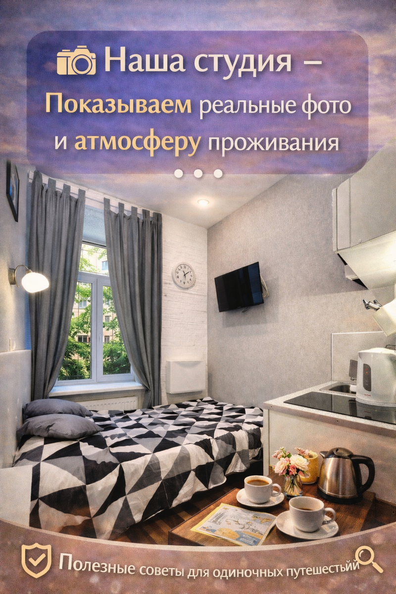 Мы убеждены, что чем честнее диалог с гостем на этапе выбора, тем приятнее будут его впечатления от поездки. Именно поэтому мы стремимся показать нашу студию во всей полноте — не как безликую «квартиру посуточно», а как уютное место с характером в одном из самых атмосферных районов Петербурга, где можно отдохнуть и почувствовать себя местным жителем.