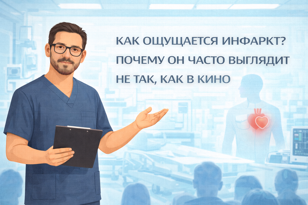 В фильмах инфаркт почти всегда выглядит одинаково: человек хватается за грудь, задыхается, падает — и всё сразу становится очевидно. В реальной жизни инфаркт чаще протекает совсем иначе — гораздо тише, коварнее и менее «кинематографично». Иногда боль бывает слабой. Иногда её вообще нет. А иногда симптомы выглядят так, что человек даже не связывает их с сердцем. Так как же на самом деле может ощущаться инфаркт? Классический симптом инфаркта — дискомфорт в груди, но он далеко не всегда выглядит как резкая боль. Ощущения сильно различаются у разных людей и зависят от возраста, пола и сопутствующих заболеваний. Это может быть: Важно: инфаркт может быть даже при слабом дискомфорте, который человек терпит или игнорирует. Инфаркт может проявляться болью или неприятными ощущениями в других местах, даже если грудь почти не беспокоит. Возможные варианты: Именно поэтому инфаркт нередко путают с проблемами желудка, позвоночника или мышц. При инфаркте может появиться внезапная нехватка воздуха, да