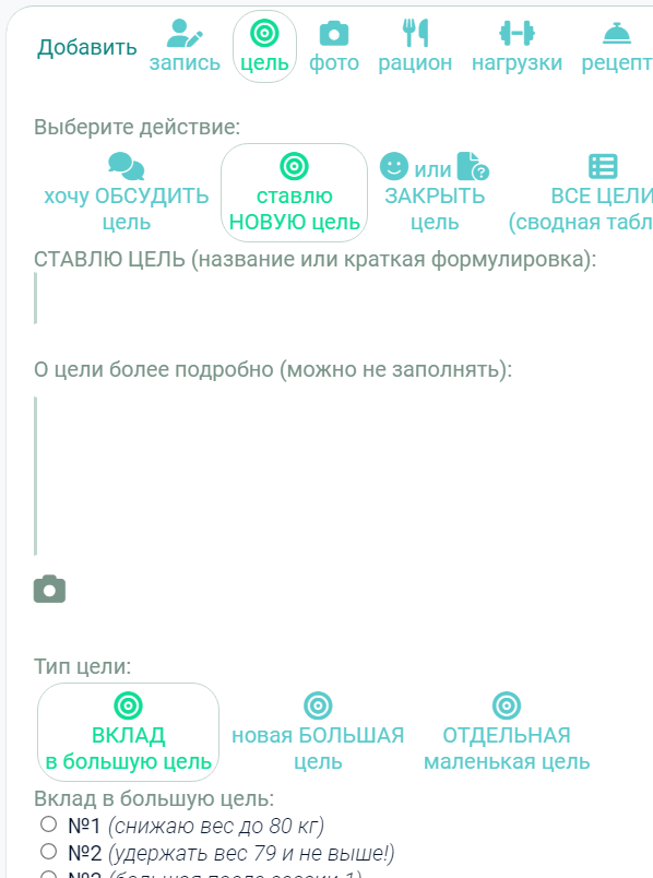 Научены так. Сейчас переучиваться - к каждому бульку внутреннему прислушиваться) так мало услышать, ещё ж понять надо - к чему оно булькнуло) А если долго игнорировать себя, то можно поломаться как я)" - восхитительные слова, которые были написаны жительницей нашего сайта KgMinus.ru в процессе обсуждения уже не помню по какой теме. Мне так отозвалось, что решила сохранить. И ситуацию сейчас проживаю настолько точно по этим словам, что захотелось поделиться. Села писать новый раздел на нашем сайте KgMinus.ru. Такая будет на страничках новая кнопка "ЦЕЛЬ" : Пишу, пишу, всё отлично идет, сплошное вдохновение, очень нравится эта задумка, потому что мне самой трудно в хаосе разнородных задач, мне нужна такая помощь, самоорганизация, опоры нужны какие-то точно обозначенные. Пишу сейчас и понимаю, что я, конечно, вообще не бизнесмен :) Я всё делаю для себя, а потом уже если кому-то понравится, то буду рада тем, кто присоединится. Я так и калькулятор калорий писала для себя, потом только чере