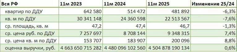🏙️ На 6,3% снизились продажи квартир в новостройках России с января по ноябрь — Dataflat