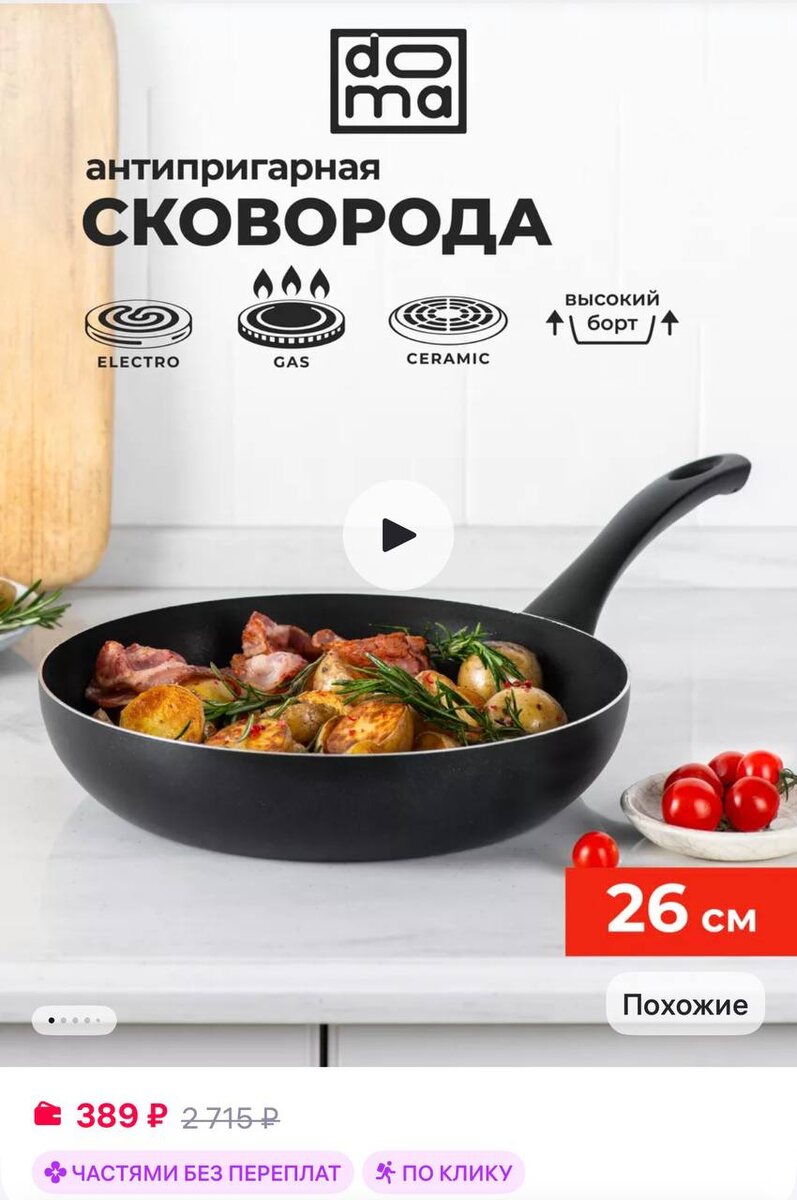 DomA Сковорода 26 см высокий борт Constant Promo