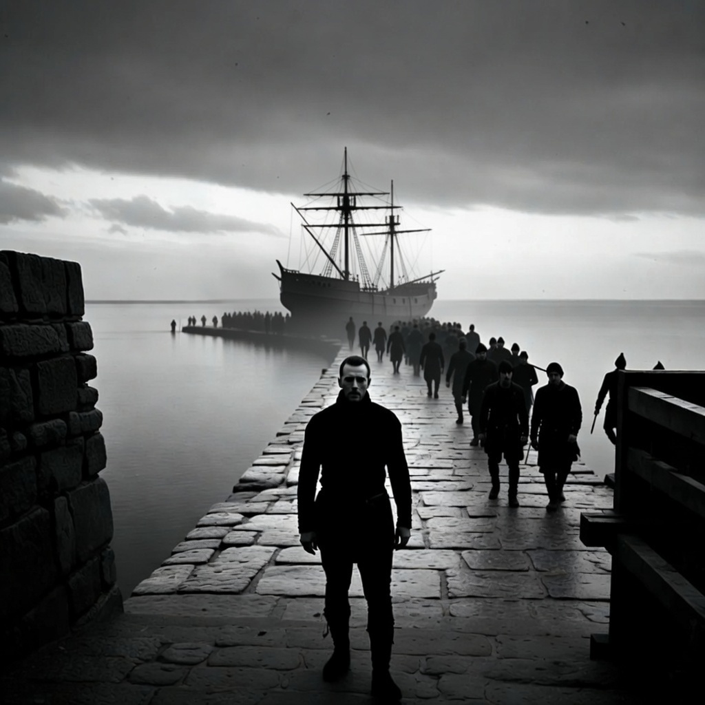 Он уже дошел до конца набережной, как вдруг ветер стих. В тишине послышался стук копыт и звон оружия. Дик остановил людей. Он отчаялся: если враги подстерегают их, защищаться будет сложно, ведь позади море, а люди толпятся в темноте на узком пирсе. Он осторожно свистнул – условный сигнал.