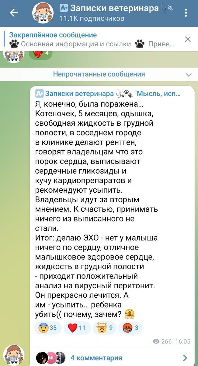 Вот поэтому говорим снова и снова, ищите второе мнение врача, особенно в ветеринарии. В лечении домашних животных ВСЕ врачи самоучки! Все! Не учат ветеринаров лечить кошек. Просто кто-то относится к своему самообразованию ответственно, тратит деньги на семинары и читает научные статьи, а кто-то всем одно и тоже прописывает 10 лет подряд и усыплять советует без мук совести. Скриншот взят из группы хорошего ветеринара